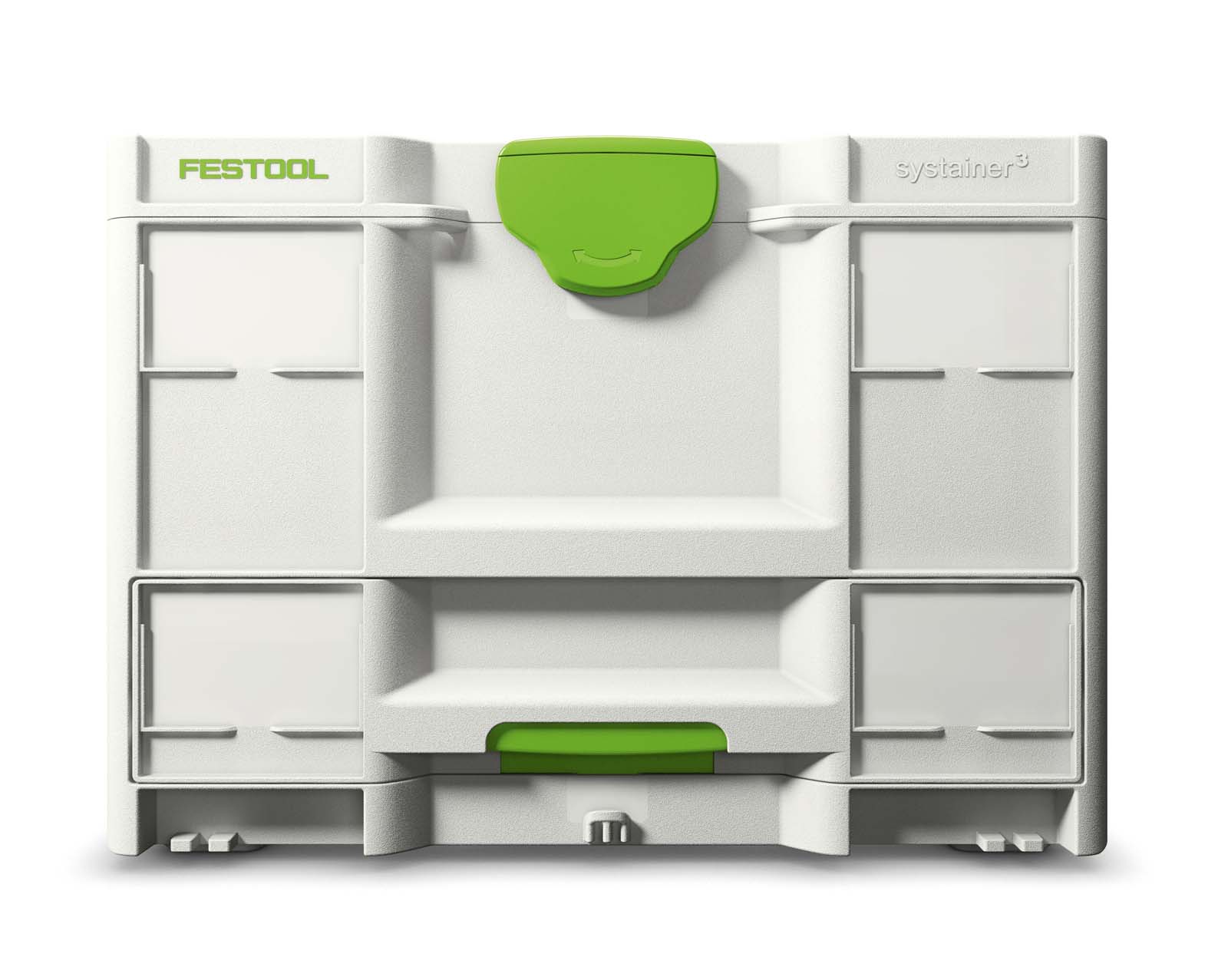 - Kompatybilność: stół pasuje do całego systemu Systainerów Festool, gwarantując łatwe łączenie i transport. Do stojaka wchodzą Systainery³ S 76.